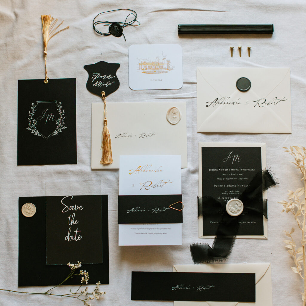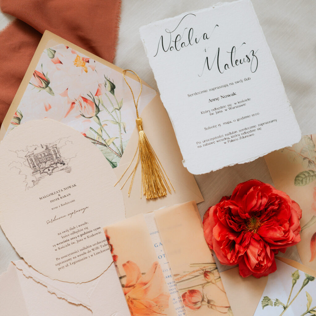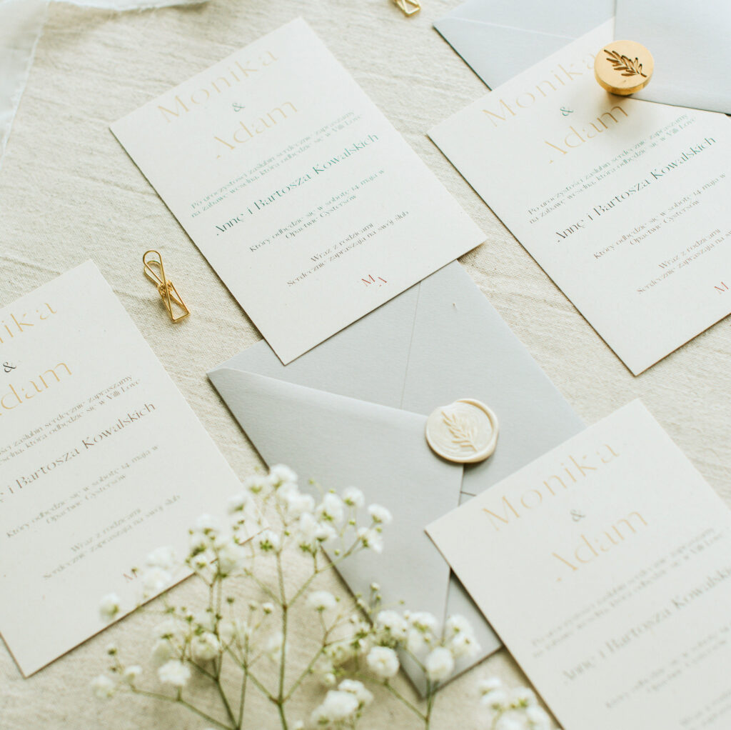 Poniżej znajdziesz kilka wzorów gotowych setów zaproszeń i papeterii ślubnej. Wszystkie z nich zawierają pełen komplet ślubnej papeterii. Dekoracje na stół, lista gości i winietki. Wszystko możesz mieć w tej samej stylistyce.