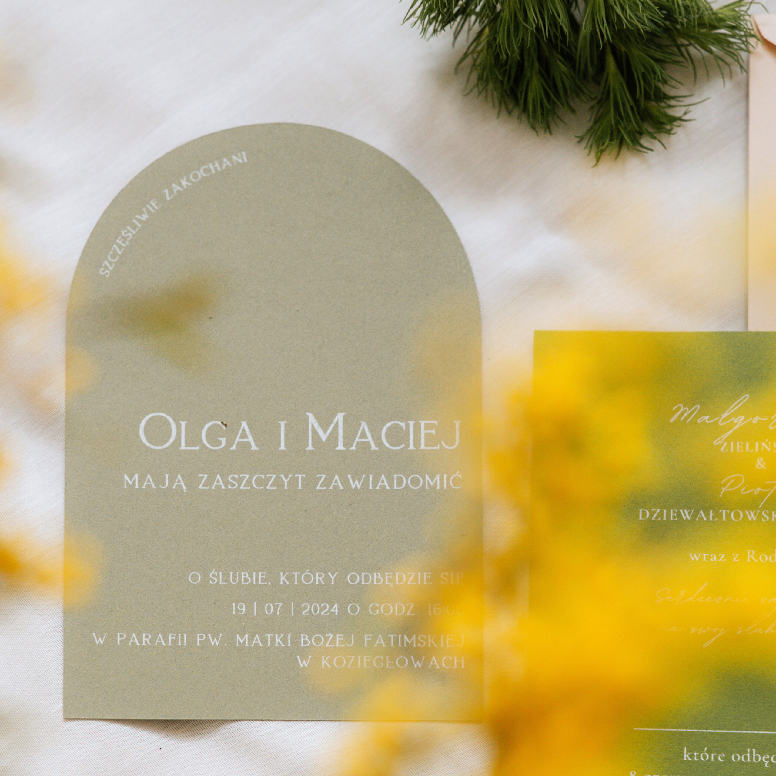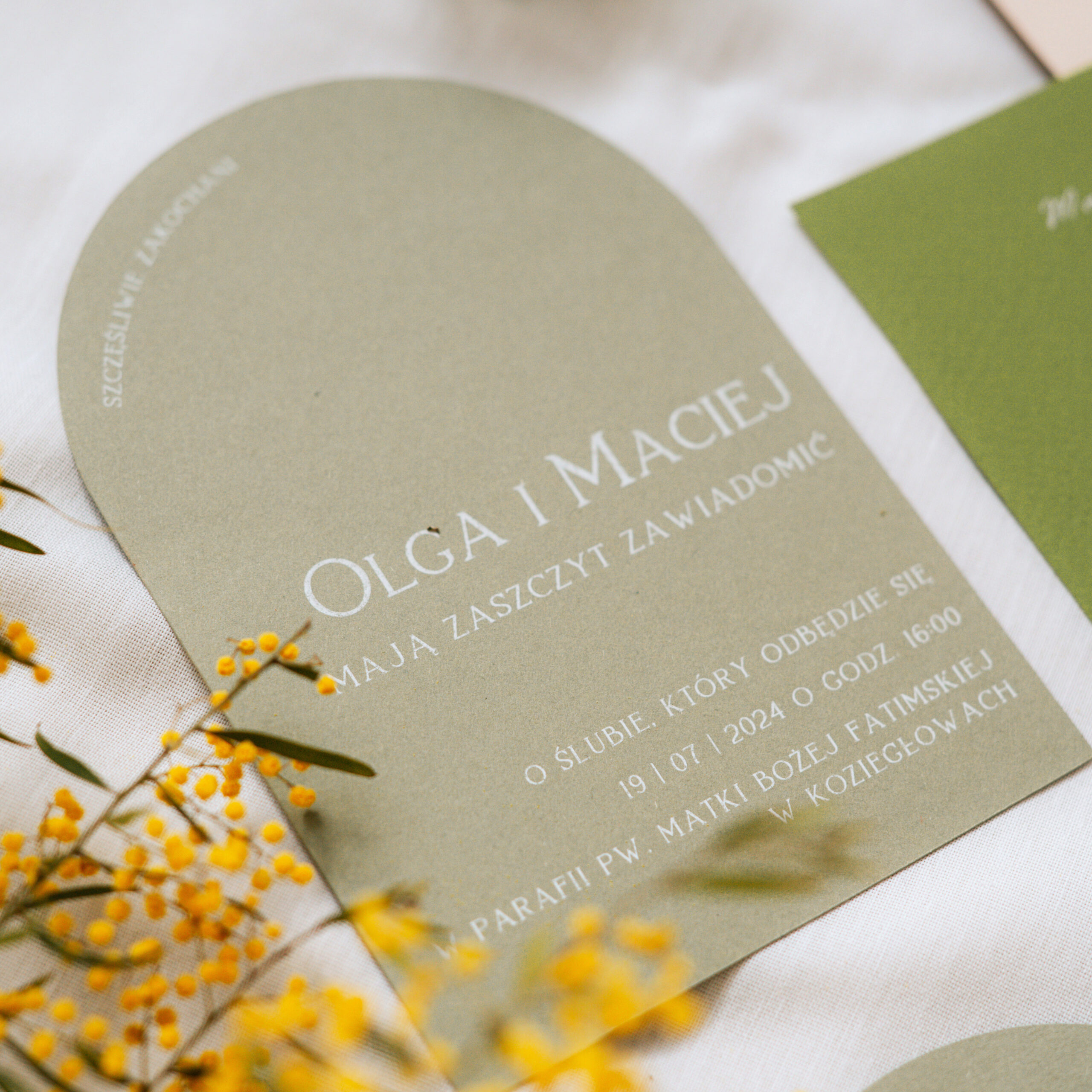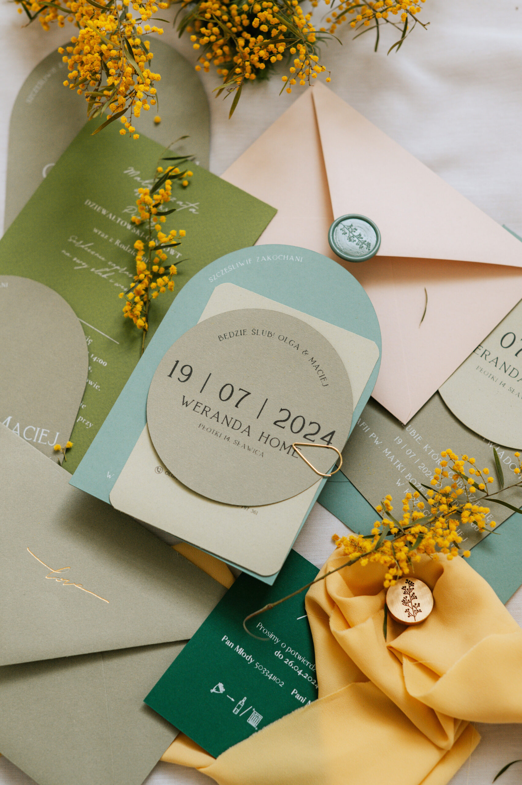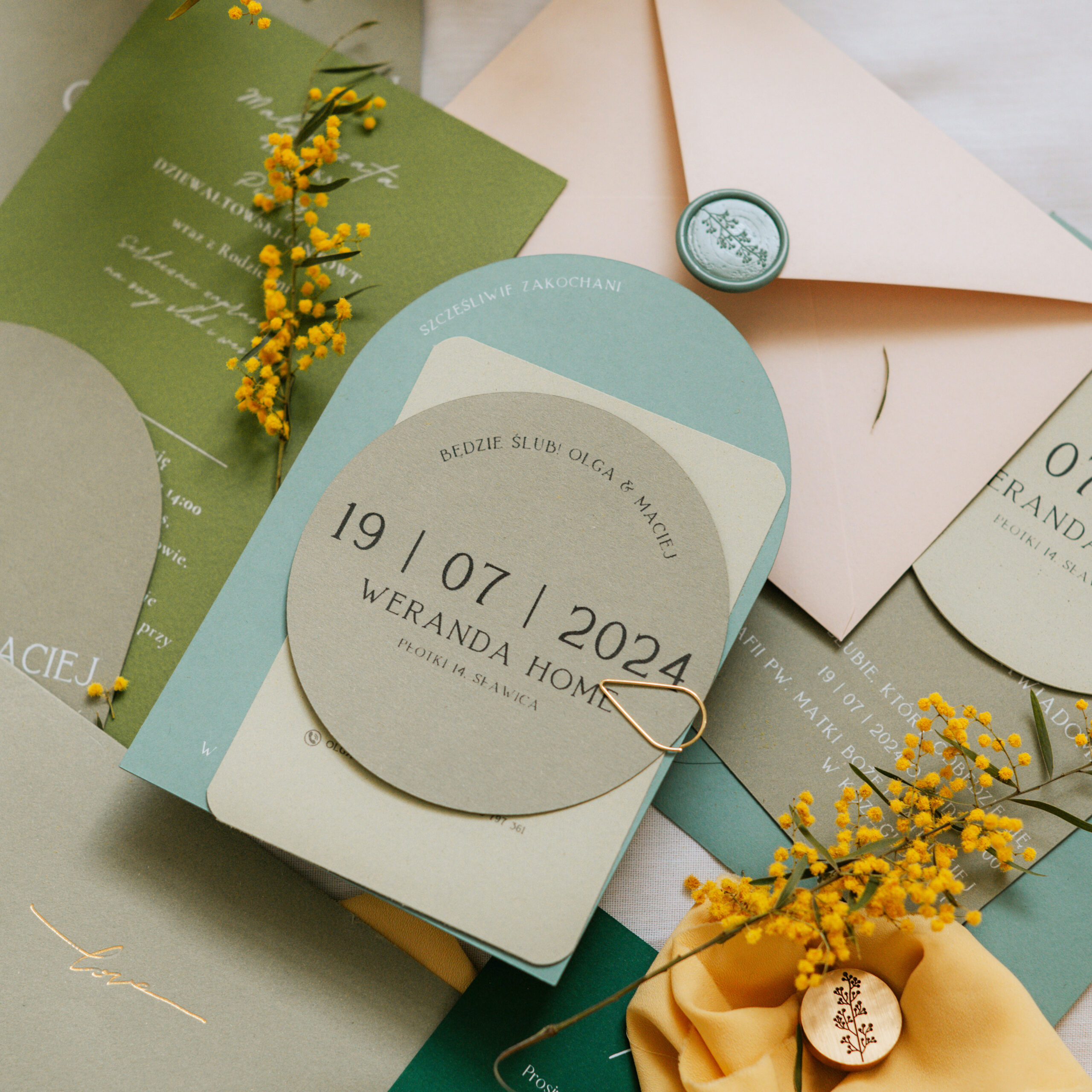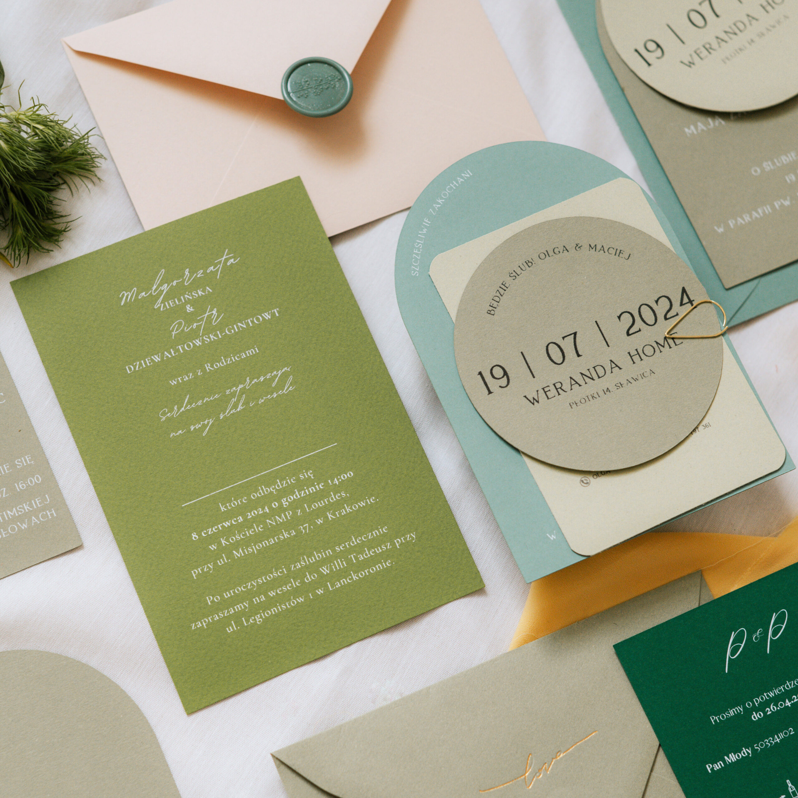 Botanical Garden to subtelne połączenie monochromatycznych odcieni zieleni z delikatnymi, kształtami. Te zaproszenia to wyjątkowa harmonia minimalizmu i odrobiny artystycznego szaleństwa.